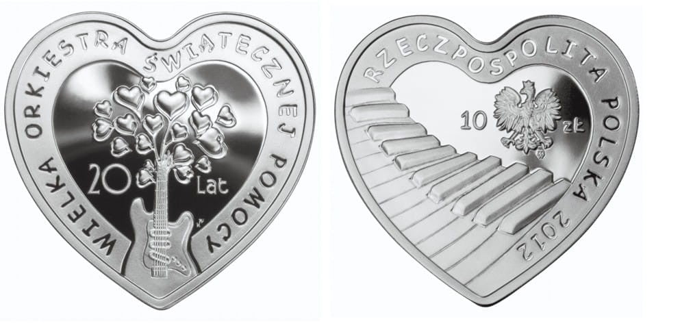 Awers: Po lewej stronie monety, mającej stylizowany kształt serca, od