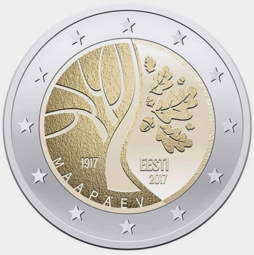 Opis: Moneta przedstawia esowaty pień dębu, od którego z jednej strony odchodzą gałęzie, a z drugiej – liście. Gałęzie symbolizują czasy rewolucji i ciężkie doświadczenia, jakich doznała Estonia na drodze do niepodległości. Liście są metaforą siły, osiągnięć i długowieczności Estonii. Na dole przy otoku po lewej stronie pnia umieszczono napis „MAAPÄEV” (nazwa tymczasowego zgromadzenia narodowego), a powyżej – rok „1917”. Na dole po prawej znajduje się nazwa kraju emisji „EESTI” (Estonia), a pod nią – rok emisji „2017”. W otoku monety widnieje 12 gwiazd Unii Europejskiej.