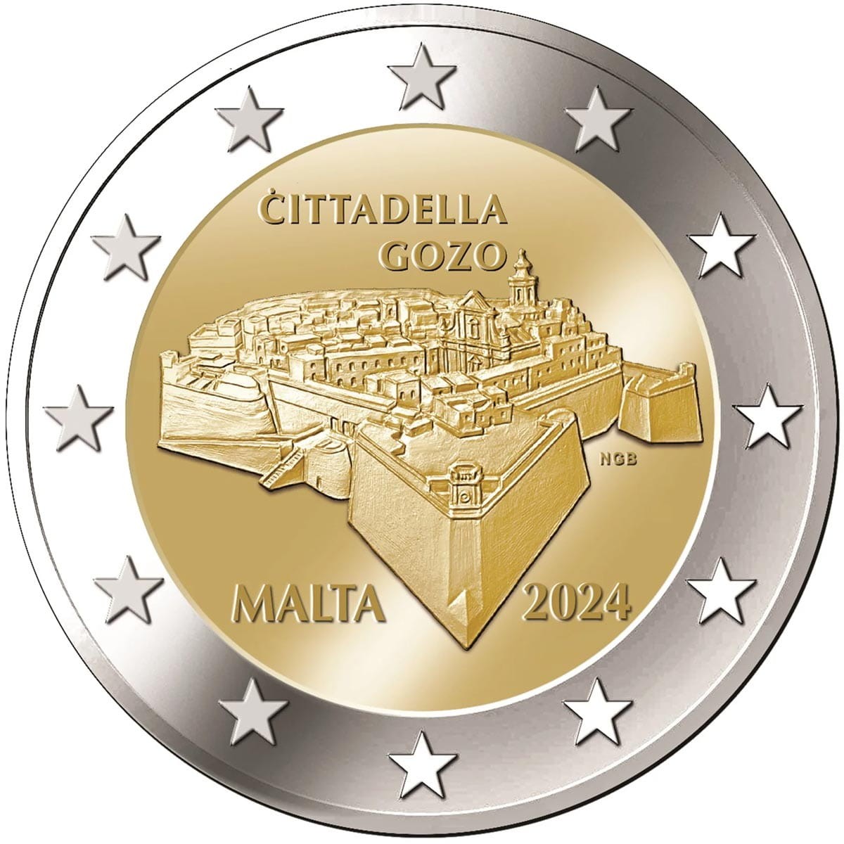 Opis: Autorem projektu jest Noel Galea Bason. Moneta przedstawia ufortyfikowane miasto znane lokalnie pod nazwą Iċ-Ċittadella (Cytadela). Znajduje się ono na wyspie Gozo, która jest drugą co do wielkości wyspą maltańskiego archipelagu. Fortyfikacje otaczające Cytadelę zawdzięczają swój obecny kształt zakonowi Joannitów, który je zbudował i zmodyfikował. Motywem monety jest miasto z murami obronnymi. Na dole po lewej stronie znajduje się nazwa kraju emisji „MALTA”, a po prawej stronie – rok emisji „2024”. Na górze umieszczono napis „ĊITTADELLA”, a pod nim nazwę „GOZO”. Moneta ma być częścią serii z maltańskimi miastami warownymi, takimi jak Mdina i Valletta, które są nieodłącznymi elementami maltańskiego i europejskiego dziedzictwa kulturowego. W otoku monety widnieje 12 gwiazd z flagi Unii Europejskiej.