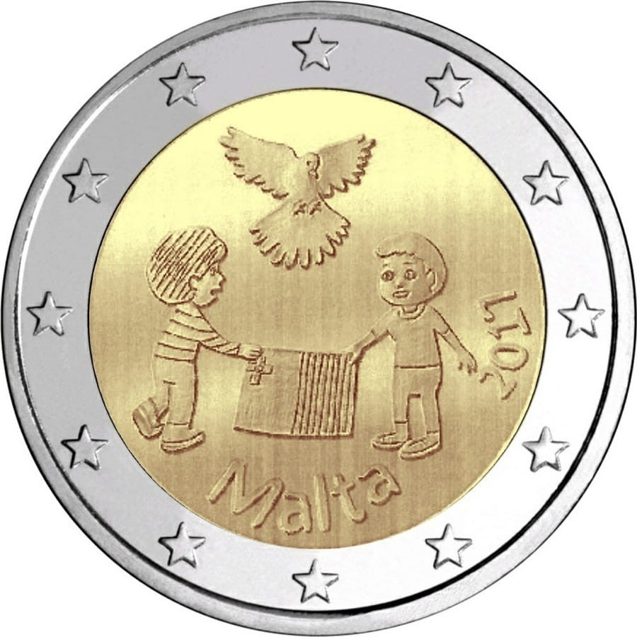 Opis: Centralny motyw monety obrazuje ideę solidarności i pokoju. Moneta, zaprojektowana przez ucznia, przedstawia dwoje dzieci trzymających maltańską flagę oraz unoszącego się nad nimi gołąbka pokoju. Na dole znajduje się nazwa kraju emisji „MALTA”, a po prawej stronie – rok emisji „2017”. W otoku monety widnieje 12 gwiazd Unii Europejskiej.