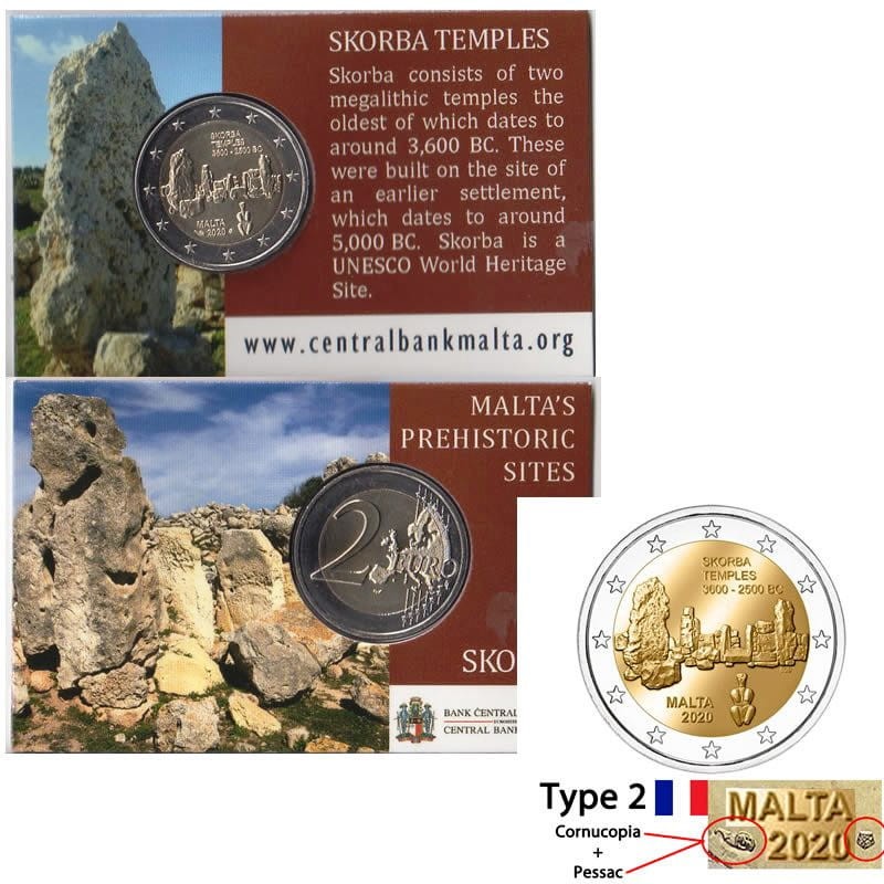 2 euro Malta Skorba typ2 pochodnia coincard 2020