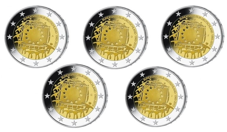 2 euro Niemcy x5 30 lat Flagi UE 2015 ADFGJ