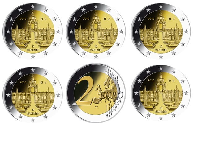 2 euro Niemcyx5 Saksonia Zwinger Drezno 2016 ADFGJ