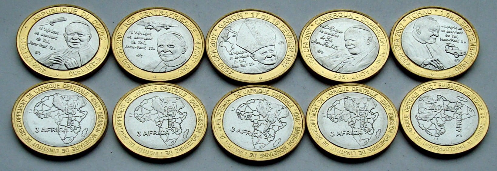 Afryka Centralna 4500 CFA x 5 JPII bimetal 2007
