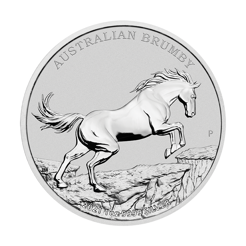 Srebrna moneta wybita przez Australijską Mennicę z Perth przedstawia dzikiego konia Brumby. Nazwa tych zwierząt pochodzi prawdopodobnie od Jamesa Brumby'ego, jednego z pierwszych australijskich osadników, który porzucił swoje konie w dziczy, a sam wyjechał na Tasmanię. Konie z sukcesem przystosowały się do otoczenia i stały się wizerunkiem Australii. Moneta przedstawia Brumby galopującego po skałach. Awers monety zawiera wizerunek królowej Elżbiety II wraz z rokiem, nominałem i krajem emisji.