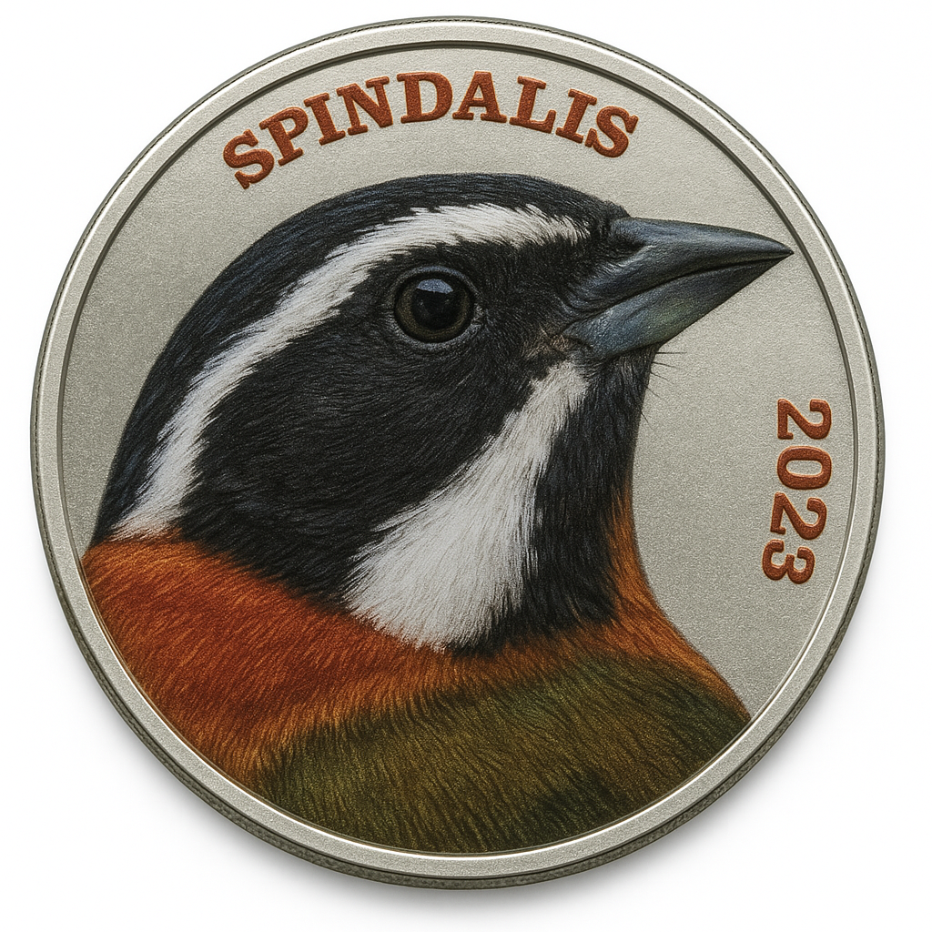 Motyw główny: Wizerunek kolorowego ptaka z rodzaju Spindalis (popularnie znany jako Antyla), typowego dla Karaibów.