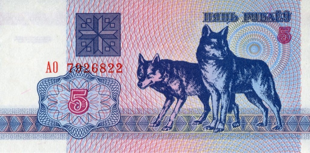 Białoruś 5 rubli Wilki 1992 P-4