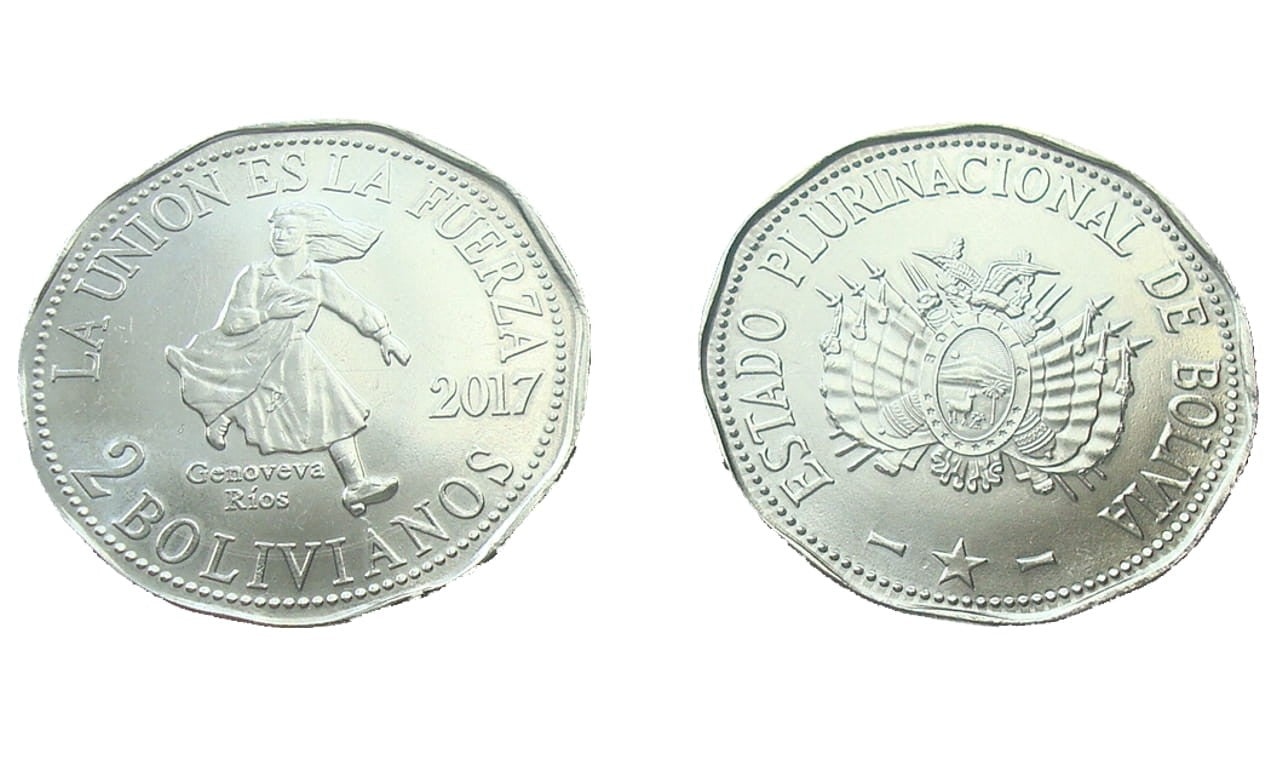 Boliwia 2 bolivanos Genoveva Rios 2017