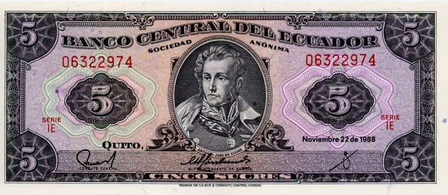 Ekwador 5 sucres A. J. Sucre 1988 P-113d