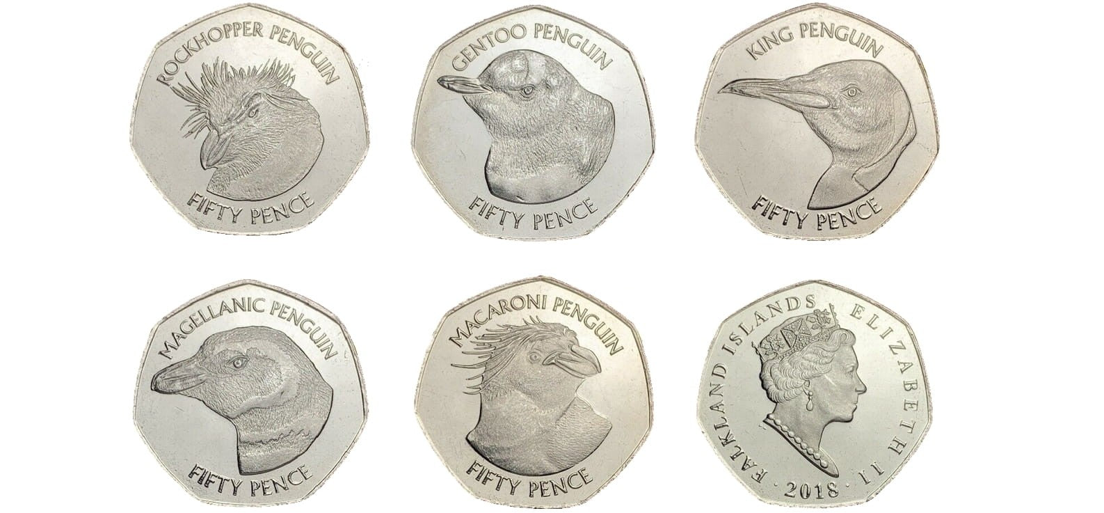 Falklandy 50 pensów x 5 Pingwiny 2018