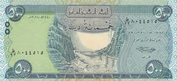Irak 500 Dinarów 2018 P-98Jest w stanie bankowym I (UNC), pochodzi z paczki bankowej i nie był w obiegu. Numer seryjny banknotu może być inny niż prezentowany na fotografii.DanebanknotuStan: I uncNominał: 500 DinarówMateriał: papierRozmiar: 142 x 66 mmSeria: różneRok: 2018Awers: Dûkan Dam on the Al Zab river.Rewers: al-thawr al-mugannah (Winged Assyrian bull, Assyrian pries, Complex of Sargon II, Khorsabad)