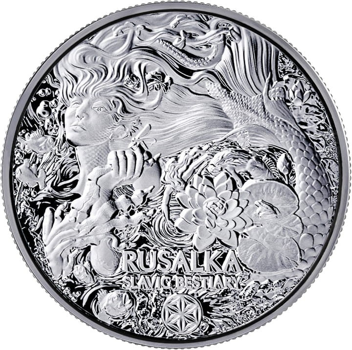 Bestie Słowiańskie: Rusałka 1000 Franków 2 uncje Srebra 2023 to pierwsza moneta bulionowa serii "Bestie Słowiańskie".