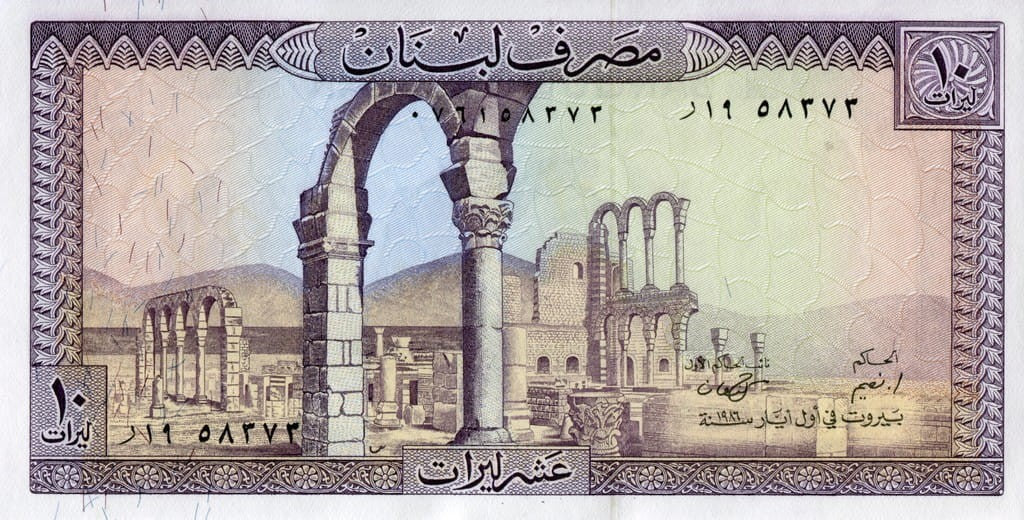 Liban 10 liwrów Ruiny / Skały 1986 P-63f