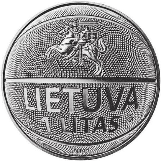 Awers: monety przedstawia stylizowaną piłkę do koszykówki oraz symbol godła Republiki Litewskiej Vytis, napis LIETUVA (Litwa), napis o nominale 1 LITA (1 lit) oraz rok emisji 2011 .