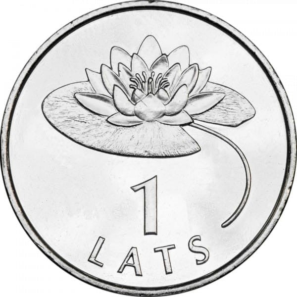 A waterlily is featured in the upper part of the coin. The numeral 1, with the inscription LATS in a semicircle, is arranged in the lower part.