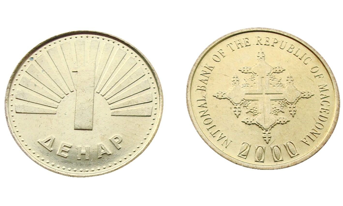 Macedonia 1 dinar Krzyż bizantyjski 2000