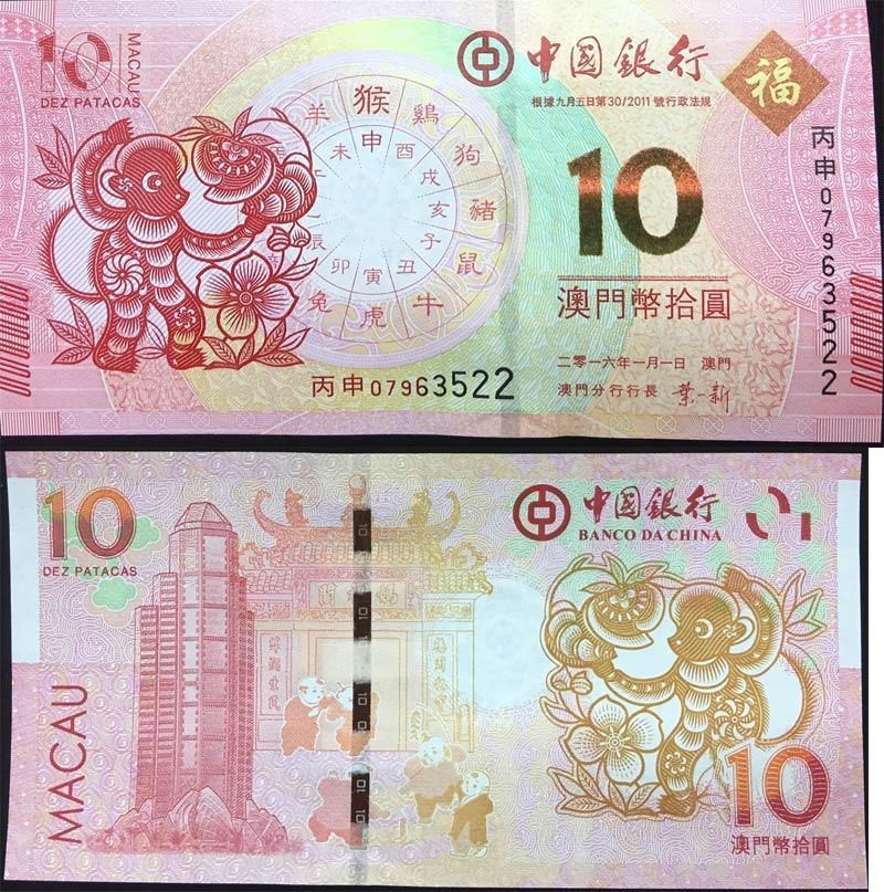 Makao 10 Pataca Rok Małpy 2016 P-119 BOC