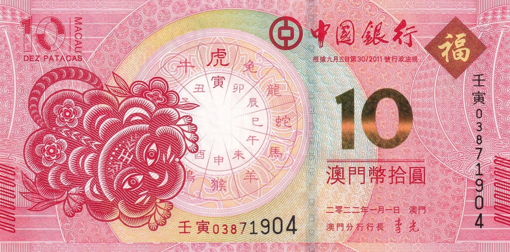 Makao 10 Pataca Rok tygrysa 2022 P-125 BOC