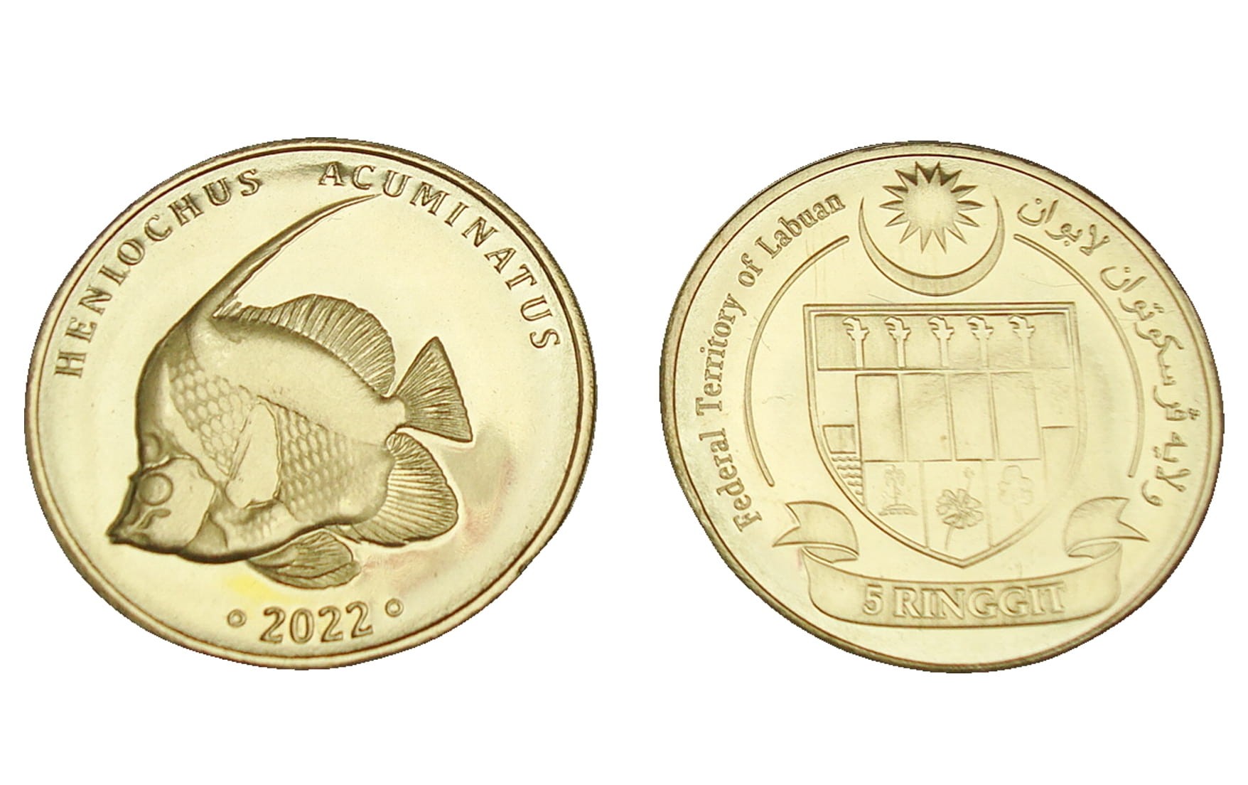 Malezja Labuan 5 ringit Rybka Heniochus 2022