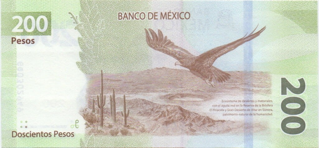 Rewers: Ekosystem buszu i pustyni jest reprezentowany przez orła przedniego w Rezerwacie Biosfery El Pinacate i El Gran Desierto de Altar w Sonorze, uznanych przez UNESCO za naturalne dziedzictwo ludzkości.