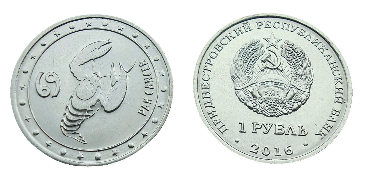 Naddniestrze 1 rubel rok Zodiak - Rak Cancer 2016