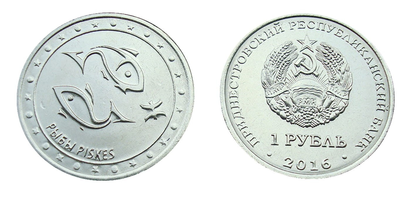 Naddniestrze 1 rubel rok Zodiak - Ryby Piskes 2016