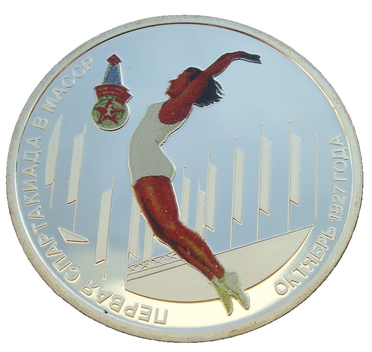 On a circle of an inscription: at the left - "ПЕРВАЯ СПАРТАКИАДА В