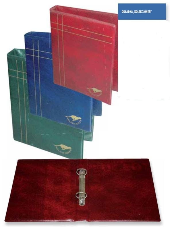 Pokryte skóropodobnym materiałem z miękkim wyściełaniem i wyjątkowo mocnym pierścieniowym zamkiem (4 zęby). Elegancka okładka na przedzie ozdobiona logo firmy kolekcjoner. Pojemność od 10 - 30 kart.