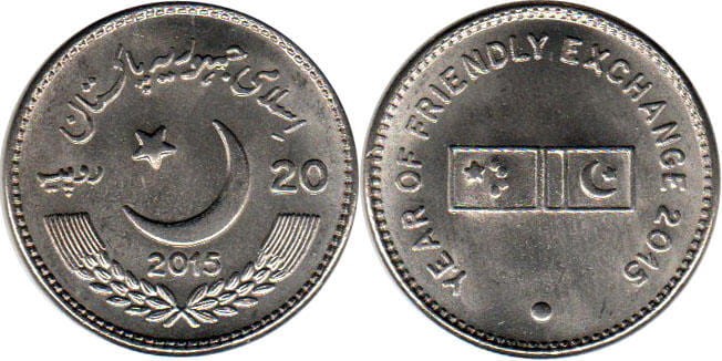 Pakistan 20 rupii Rok wymiany z Chinami 2015
