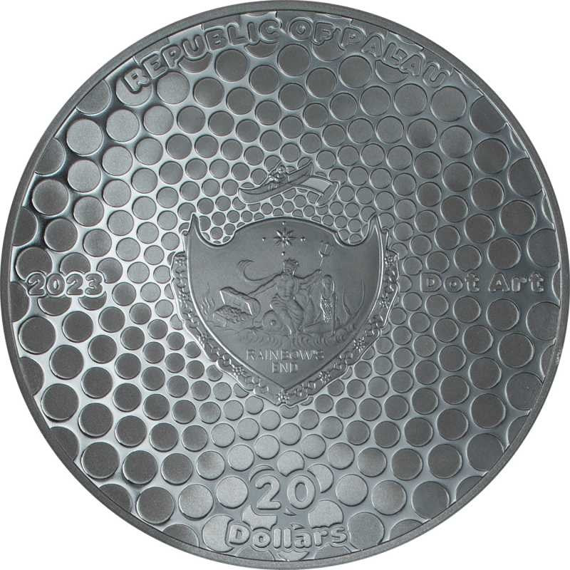 Palau 20$ Dot Art Flower With Butterfly 2023 3 Oz Ag.999