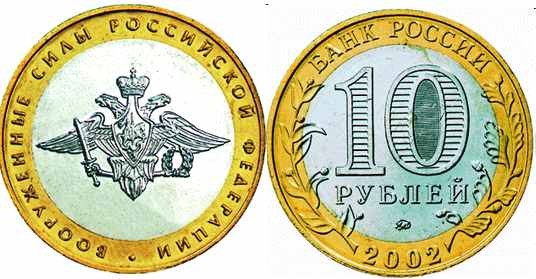 Rewers: Emblemat sił zbrojnych Federacji Rosyjskiej. Wzdłuż rantu na górze napis: "ВООРУЖЕННЫЕ СИЛЫ РОССИЙСКОЙ ФЕДЕРАЦИИ".