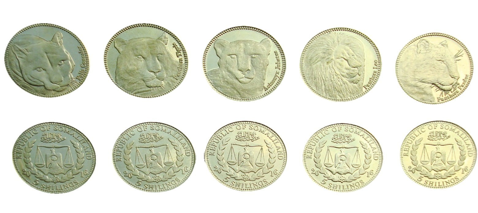 Somaliland 5 szylingów x 5 Wielkie koty 2016
