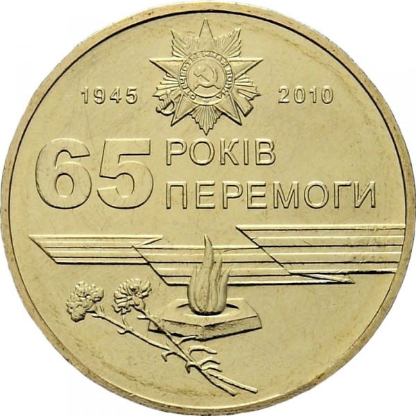 28 kwietnia Centralny Bank Ukrainy wprowadził do obiegu okolicznościową monetę obiegową o nominale 1 hrywny. Moneta upamiętnia 65. rocznicę zwycięstwa w Wielkiej Wojnie Ojczyźnianej.