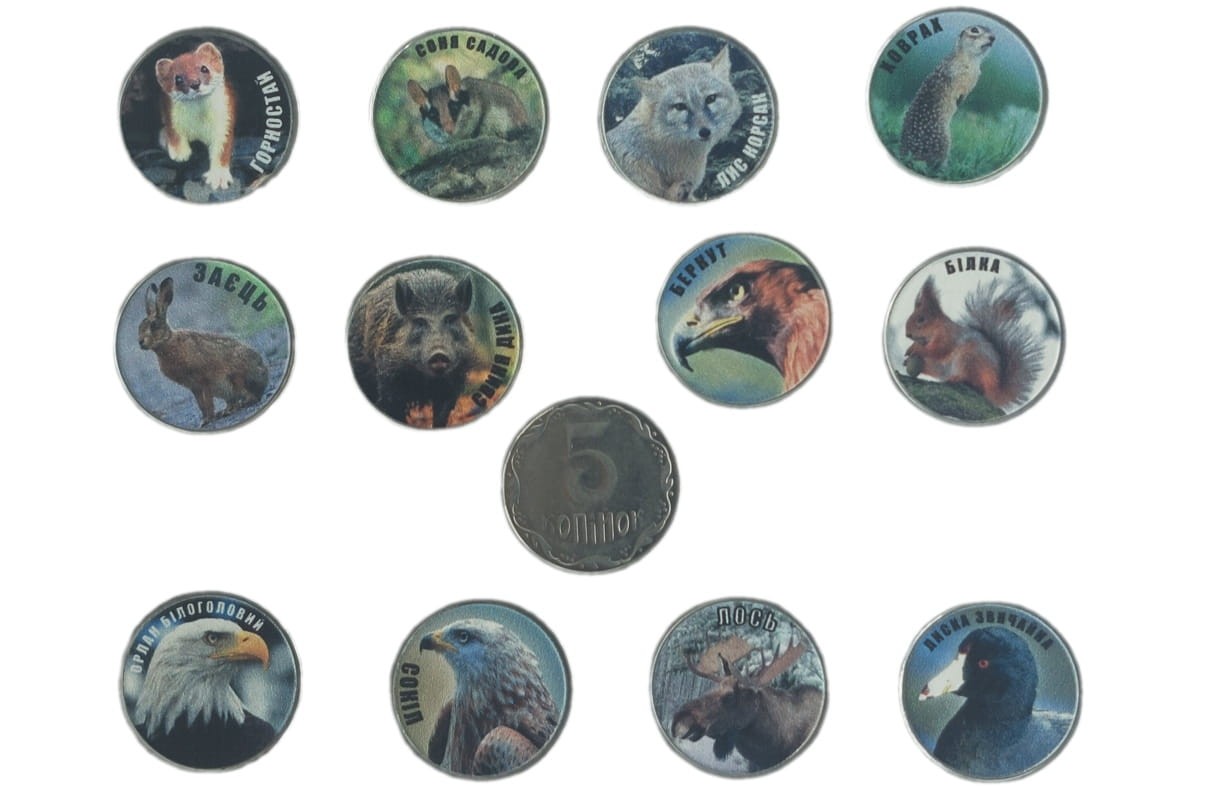 Zestaw "Ukraina 12 x 5 kopiejek Zagrożone zwierzęta 2025" składa się z dwunastu monet o nominale 5 kopiejek, z których każda przedstawia inne zagrożone zwierzę występujące na terenie Ukrainy. Monety te są częścią serii mającej na celu zwiększenie świadomości na temat ochrony przyrody i różnorodności biologicznej kraju.