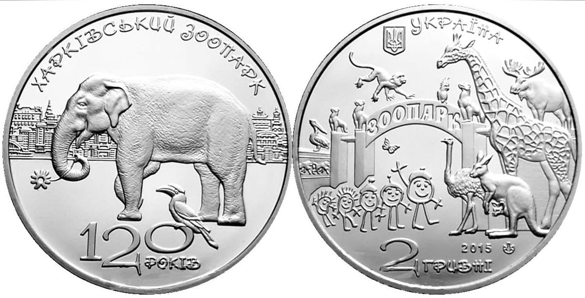 UKRAINA 2 UAH 120 - lecie ZOO w Charkowie 2015