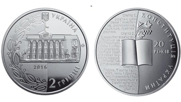 UKRAINA 2 UAH 20 lat konstytucji 2016