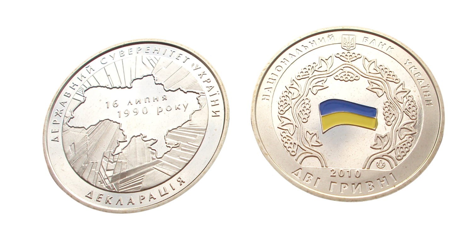 Opis: Moneta wydana z okazji 20. rocznicy uchwalenia przez Radę Najwyższą Ukrainy dokumentu polityczno-prawnego, w którym ogłosiła suwerenność Ukrainy: samostanowienie, jedność, pełność i niepodzielność władzy na jej terytorium oraz niezależność i równouprawnienie w stosunkach zewnętrznych.