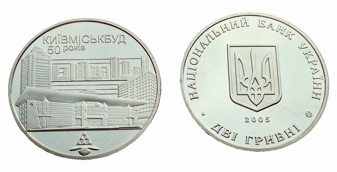 UKRAINA 2 uah 50-lecie Kyivmiskbudu 2005