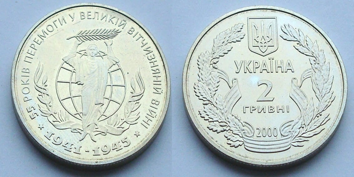 UKRAINA 2 uah 55-lecie Zwycięstwa w Wojnie Ojczyźnnianej 2000