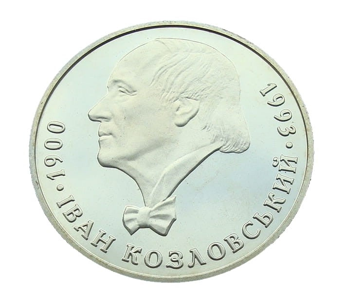 Rewers: portret artysty z profilu i napis dookoła monety: 1900, ІВАН КОЗЛОВСЬКИЙ, 1993.