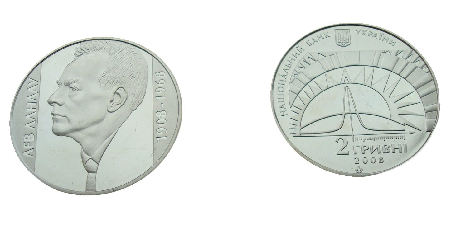 Opis: moneta poświęcona Lwu D. Landau - wybitnemu fizykowi- teoretykowi, laureatowi Nagrody Nobla. Wniósł wkład prawie we wszystkie dziedziny fizyki teoretycznej. Autor pracy o dwumagnetyzmie wolnych elektronów, teorii nadpłynności rzadkiego helu i wielu innych.