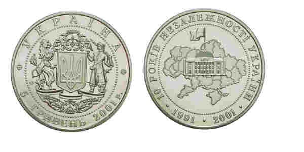 UKRAINA 5 UAH 10 lat niepodległości 2001
