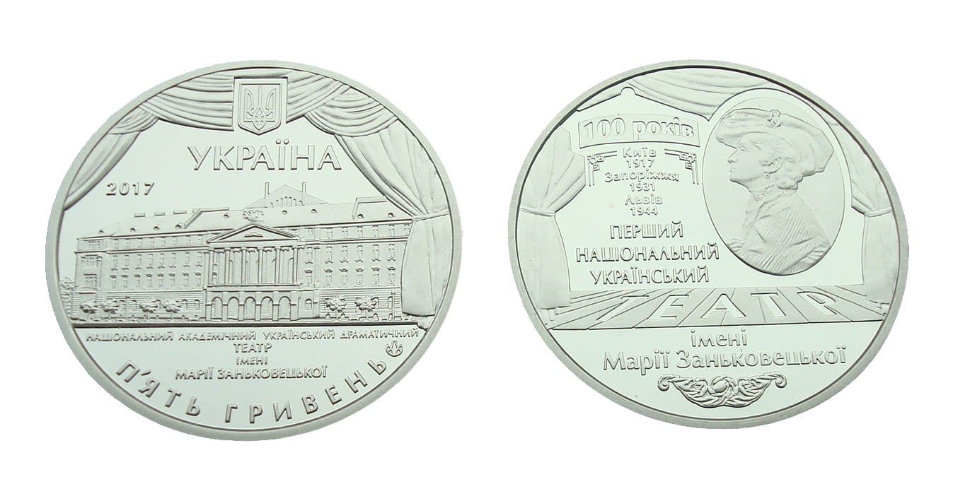 UKRAINA 5 UAH 100 lat teatru M. Zankowieckiej 2017