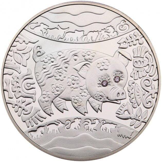 To moneta upamiętniająca Rok Świni - jeden z lat chińskiego kalendarza opartego na dwunastoletnim cyklu Jowisza.