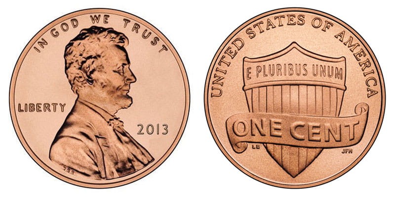 PLURIBUS UNUM ("out of many, one"). The 13 vertical