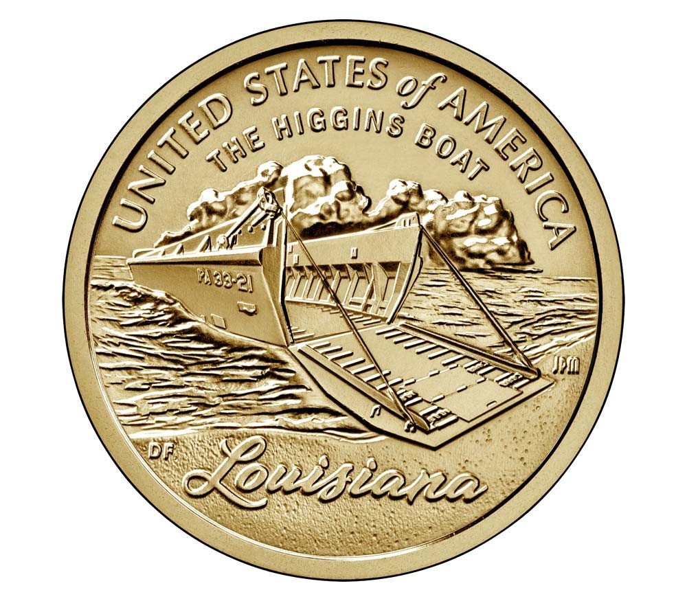 Moneta 1 dolarowa z 2023 roku z Innowacją Higgins Boat nr 19 przedstawia łódź desantową Higgins Boat, która odegrała kluczową rolę w lądowaniu wojsk alianckich w Normandii podczas II wojny światowej. Moneta ta została wybita przez mennicę USA i jest częścią serii monet “American Innovation”.