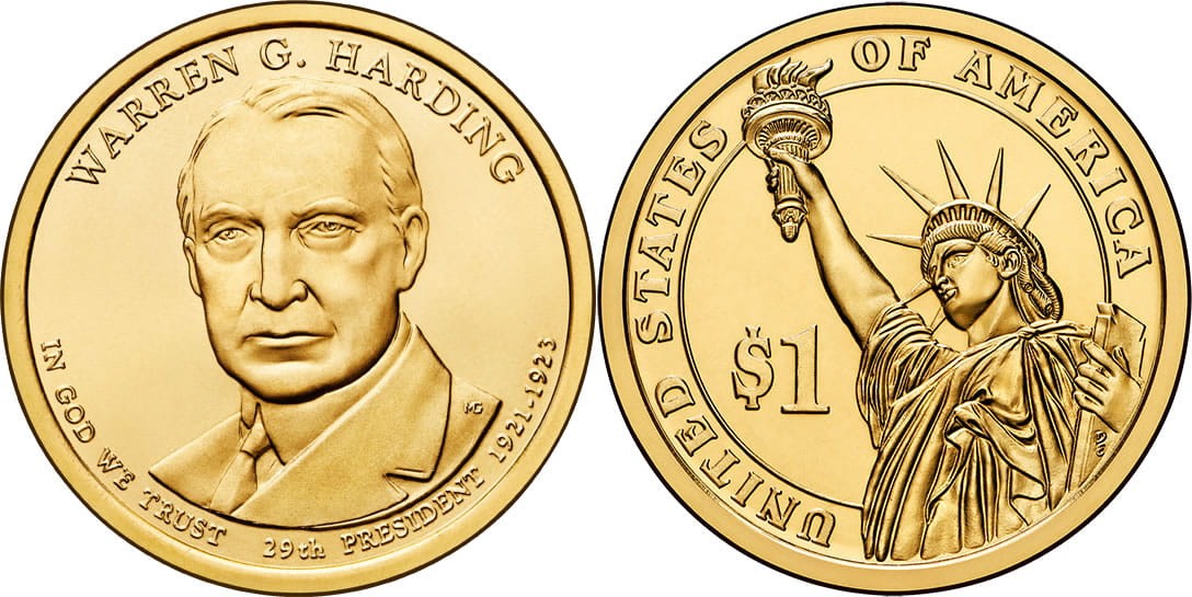 Description: Features an image of Warren G. Harding with the inscriptions WARREN G. HARDING, IN GOD WE TRUST, 29th PRESIDENT and 1921 – 1923.