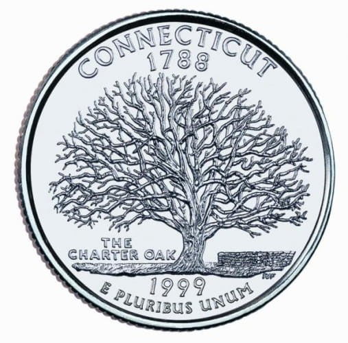 Description: Celebrates "The Charter Oak" tree, which proved to be a good hiding place for the state's original Constitution.