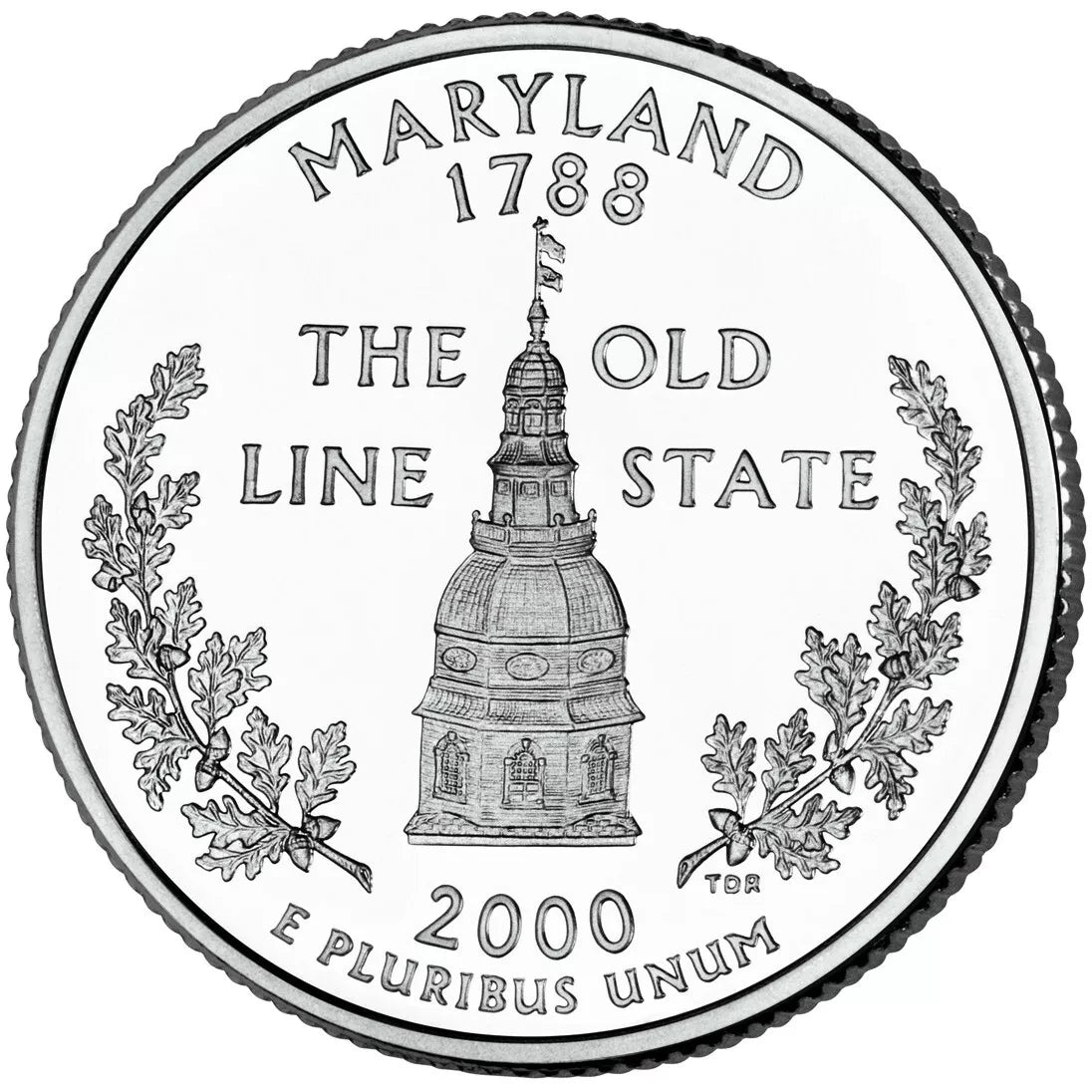Description: Highlights the striking Maryland Statehouse surrounded by White Oak leaf clusters and the nickname "The Old Line State."