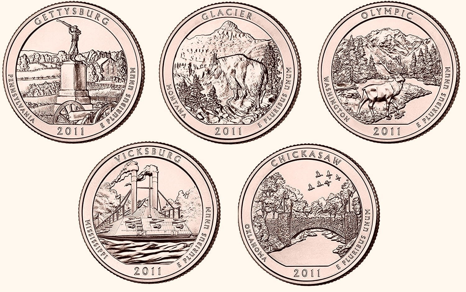 USA 25 c Parki narodowe x5 2011 platerowane złotem